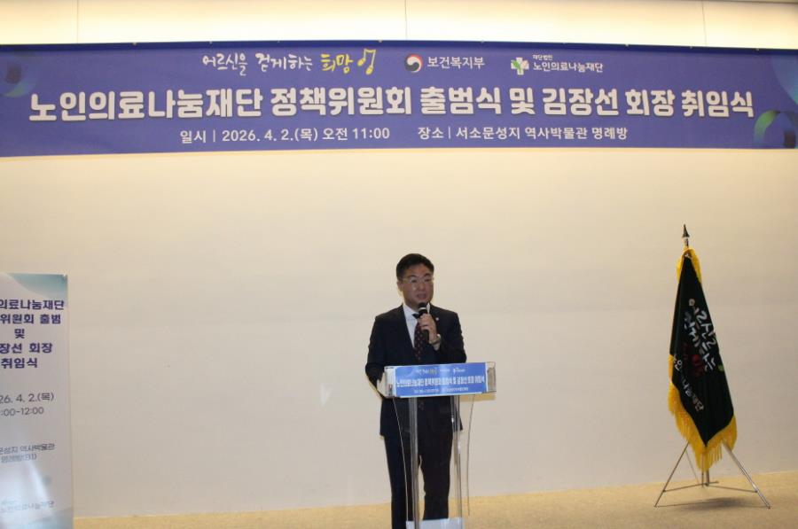 노인의료나눔재단(이사장 김성환)은 4월 2일(목) 오전 11시, 서울 중구 서소문성지 역사박물관 명례방에서 ‘정책위원회 출범식 및 김장선 초대 회장 취임식’을 성황리에 개최했습니다.