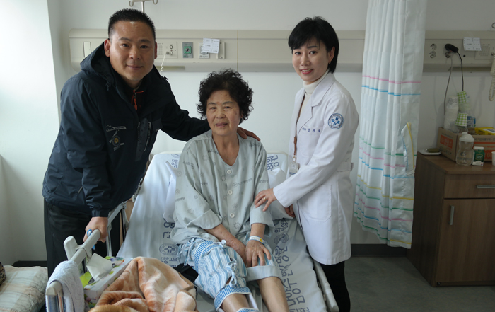 "나이가 많은데다 심장병이 있어 수술이 불가능할 것이라고 생각했는데 이렇게 거뜬하게 일어났잖아. 다른 것보다 밤낮으로 괴롭히던 통증이 없어져서 너무 좋아. 병원에서 간병까지 다 지원이 되니 이것 또한 좋고 의료진들도 친절하게 챙겨주고 치료해줘서 고맙고….