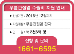 하지만 가장 큰 문제는 바로 수술비용이다. 건강보험 가입자라도 본인 부담금이 한 무릎 당 250만~300만원이 넘는 비용이 든다. 양쪽 무릎을 수술해야 하는 경우라면 수술비는 물론 수술 후 물리치료비, 2~3주 가량 입원비, 입원기간 동안의 간병비 등을 합치면 약 600만~700만원의 많은 비용이 든다. 따라서 경제적으로 어려운 노인들은 통증이 있어도 최대한 견디며 쉽게 수술을 결정하지 못하는 것이다.